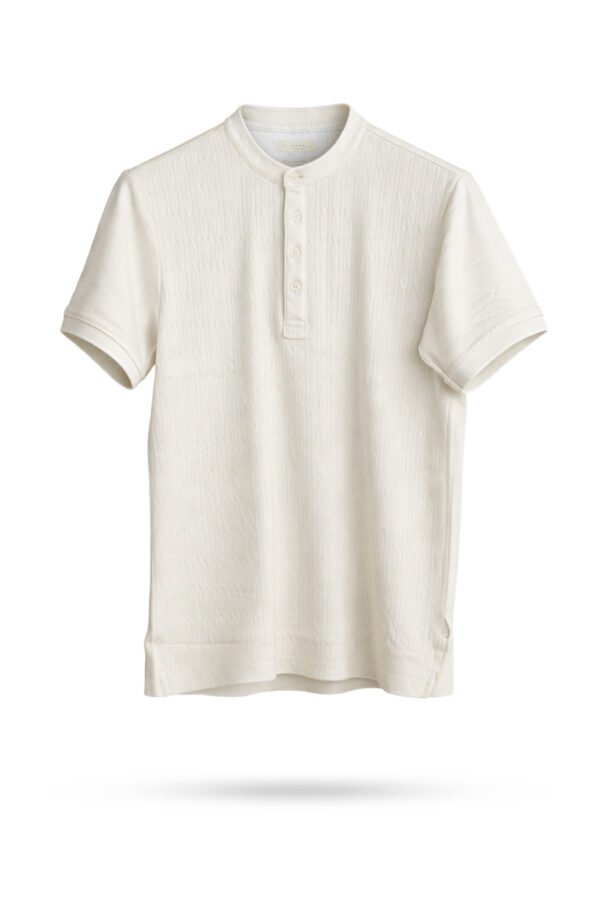 A premium white Henley shirt featuring a distinctive vertical ripple texture.