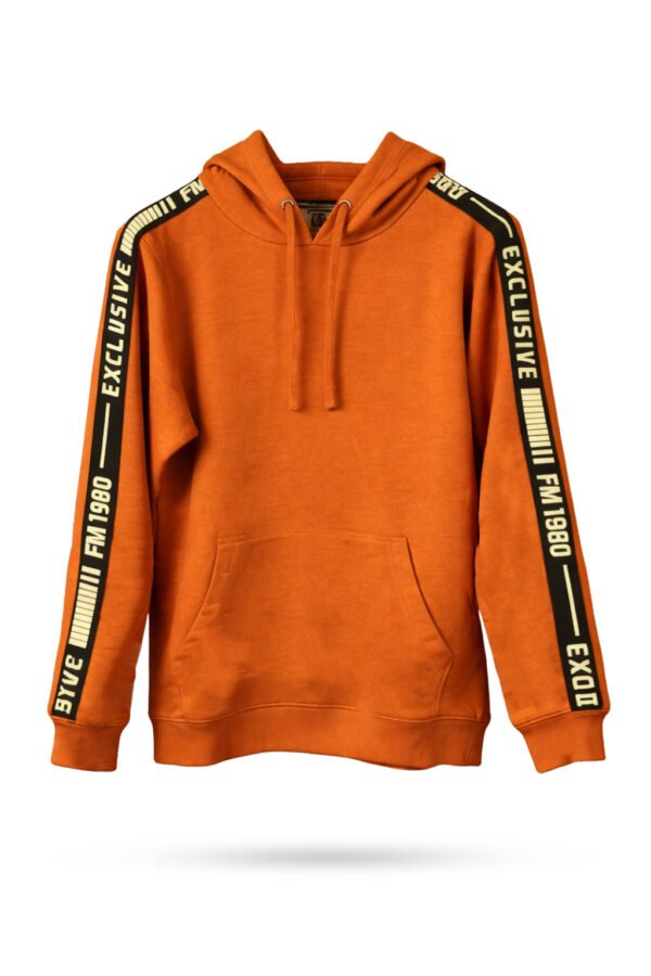 Elevate your casual wardrobe with our exquisite hoodie, a perfect blend of comfort and style. Crafted from premium, soft-touch fabric, this hoodie features a striking orange and black stripe that runs elegantly down the side, adding a bold yet sophisticated flair to your ensemble. The relaxed fit ensures all-day comfort, whether you’re lounging at home or out on the town, while the adjustable drawstring hood provides versatility for any weather. Thoughtfully designed with ribbed cuffs and hem, this piece not only retains its shape but also offers a snug fit that keeps the chill at bay. Pair it effortlessly with your favorite jeans or joggers for a chic, laid-back look that exudes confidence and modernity. Indulge in the luxury of style and comfort with this must-have addition to your wardrobe.