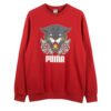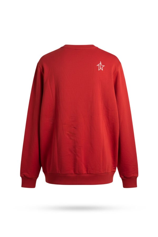 Vibrant red crew neck featuring an adorable feline graphic. Soft, cozy, and perfect for cat lovers.